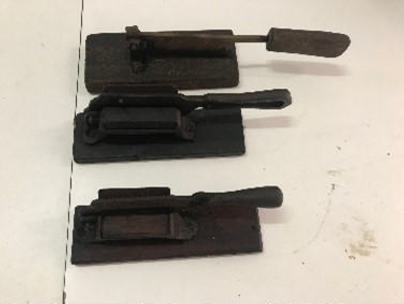 The cutter is hold to a wooden base with screws and has a well worm wooden striker plate